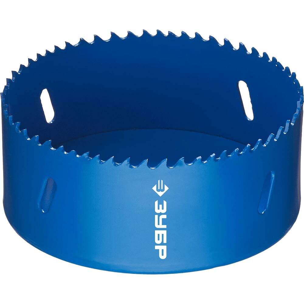 Биметаллическая коронка ЗУБР Эксперт 105 мм, быстрорежущая сталь 29531-105_z01 применяется в комплекте с дрелями. Используется вместе с державкой и центрирующим сверлом (не входит в комплект поставки и приобретается отдельно) для проделывания отверстий в различных видах древесины, металлах и пластике. Максимальная глубина сверления 38 мм.Универсальная биметаллическая кольцевая пила ЗУБР имеет разведённые закалённые зубья повышенной твёрдости с прогрессивным расположением, благодаря чему гарантируется аккуратное чистовое сверление без трещин и сколов. Компенсационные прорези в корпусе обеспечивают снижение шума при работе, а также предотвращают деформацию пилы вследствие перегрева изделия.