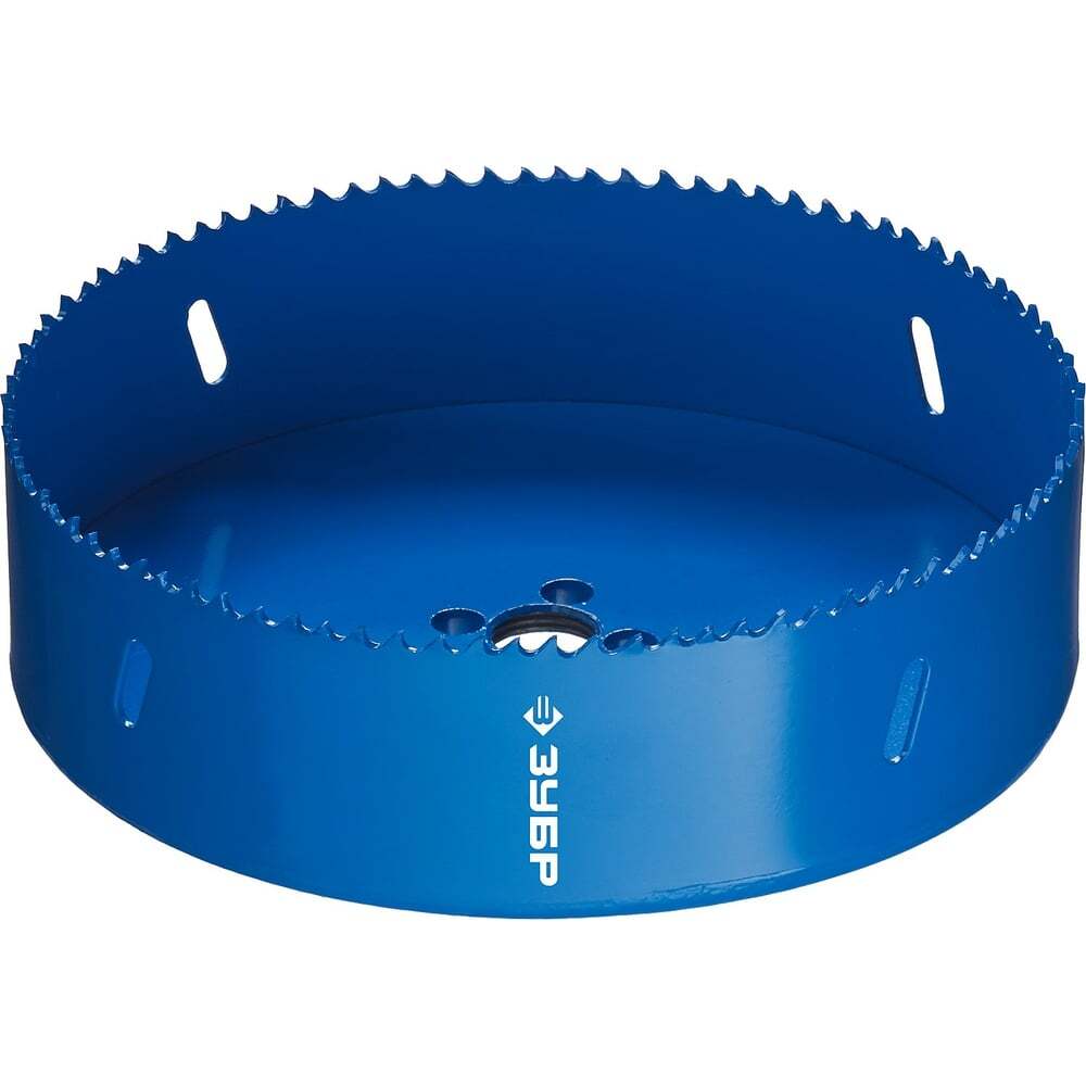 Биметаллическая коронка ЗУБР Эксперт 152 мм, быстрорежущая сталь 29531-152_z01 применяется в комплекте с дрелями. Используется вместе с державкой и центрирующим сверлом (не входит в комплект поставки и приобретается отдельно) для проделывания отверстий в различных видах древесины, металлах и пластике. Максимальная глубина сверления 38 мм.Универсальная биметаллическая кольцевая пила ЗУБР имеет разведённые закалённые зубья повышенной твёрдости с прогрессивным расположением, благодаря чему гарантируется аккуратное чистовое сверление без трещин и сколов. Компенсационные прорези в корпусе обеспечивают снижение шума при работе, а также предотвращают деформацию пилы вследствие перегрева изделия.