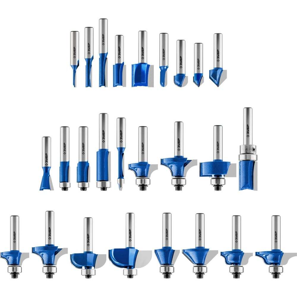 Набор фрез по дереву (26 шт; хвостовик 8 мм) Зубр 28796-H26 используется с фрезерными станками и ручными фрезерами. Применяется для профилирования кромок, фрезерования канавок при работе с различными видами древесины. Режущие кромки затачиваются на современных 5-ти координатных станках с ЧПУ, что обеспечивает точную геометрию. Фрезы изготовлены из высококачественного мелкозернистого твердого сплава. Максимальные рабочие обороты 24000.