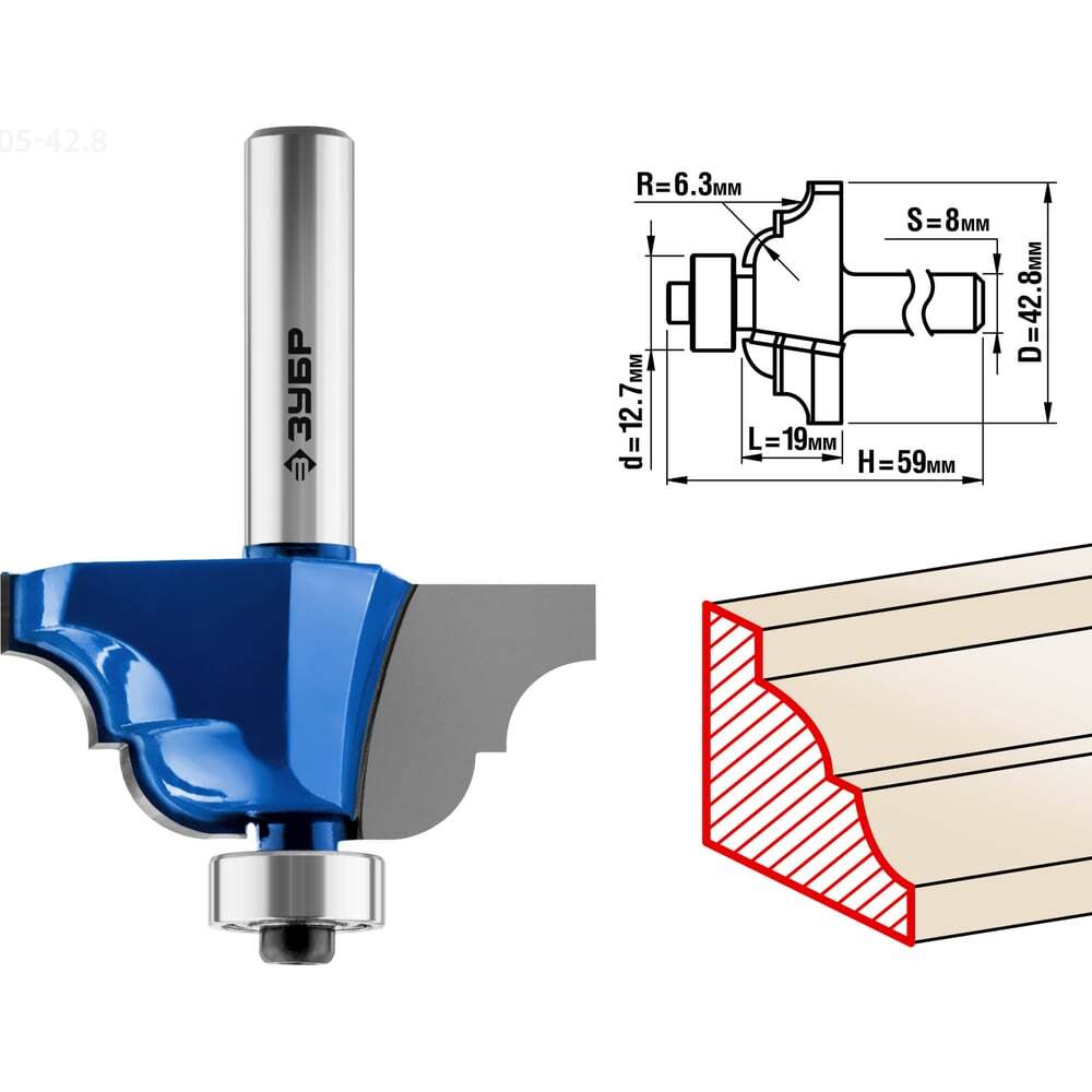 Фреза кромочная калевочная №4 ЗУБР 28705-42.8, предназначена для скругления кромок при обработке столешниц, полок, шкафов и прочих работ с разнообразными видами древесины. Высококачественный твердый сплав для повышенного ресурса и чистоты обработки. Заточка производится только на самых современных станках с ЧПУ. Упорный подшипник 12,7 мм позволяет обрабатывать криволинейные кромки без дополнительных приспособлений.