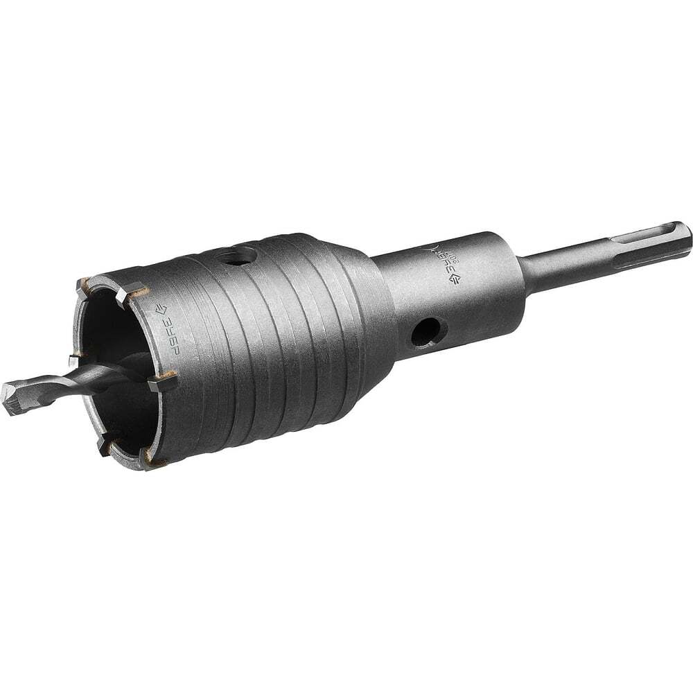 Коронка по бетону ПРОФЕССИОНАЛ с державкой (50 мм; М22; SDS-Plus) Зубр 2918-50 предназначена для сверления отверстий в бетоне, кирпиче, природном и искусственном камне, а также плотных известняках. Используется с дрелями и перфораторами мощностью не менее 850 Вт в режиме ударного сверления. Коронка имеет твердосплавные зубья из сплава ВК85, усовершенствованную систему крепления сверла на конус и резьбовое соединение с державкой М22.