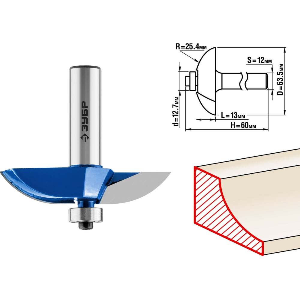 Фреза фигирейная №2 ЗУБР 28761-63.5, предназначена для обработки кромок филенок при работе с различными видами древесины. Высококачественный твердый сплав ВК 6 для повышенного ресурса и чистоты обработки. Заточка производится только на самых современных станках с ЧПУ. Упорный подшипник 12,7 мм позволяет обрабатывать криволинейные кромки без дополнительных приспособлений.