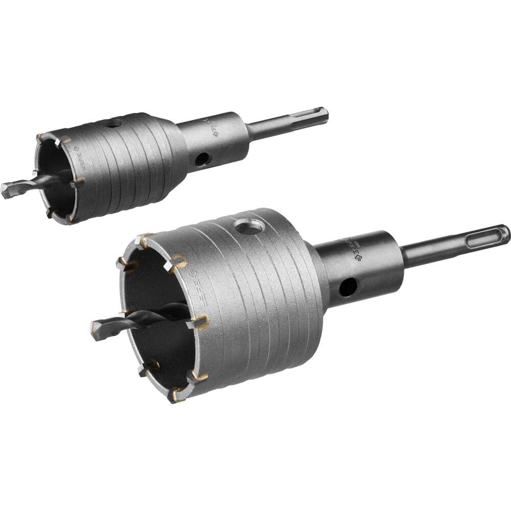 Набор коронок Профессионал ЗУБР 29185-H2-1 предназначен для сверления отверстий в бетоне, кирпиче, природном и искусственном камне, а также плотных известняках. Используется с дрелями и перфораторами мощностью не менее 850 Вт в режиме ударного сверления.