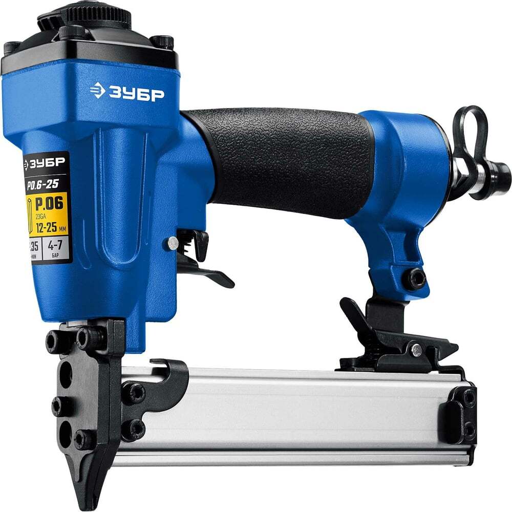Пневматический нейлер ЗУБР Профессионал P0.6-25 31936 применяется для незаметного скрепления заготовок из дерева, пластика, ДВП и т.д. Имеет прочный литой алюминиевый корпус. Вместимость шпилек (гвоздей) - 100 шт. Обрезиненная рукоять обеспечивает надежный хват.