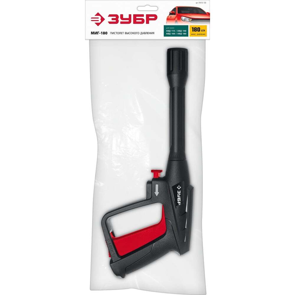 Пистолет высокого давления, для минимоек ЗУБР Миг-180 70410-180 применяется для направленного регулируемого распыления струи высокого давления на выходе из мойки. Подходит для моек АВД-115, АВД-140, АВД-160, АВД-180. Рассчитан на давление до 200 Атм.