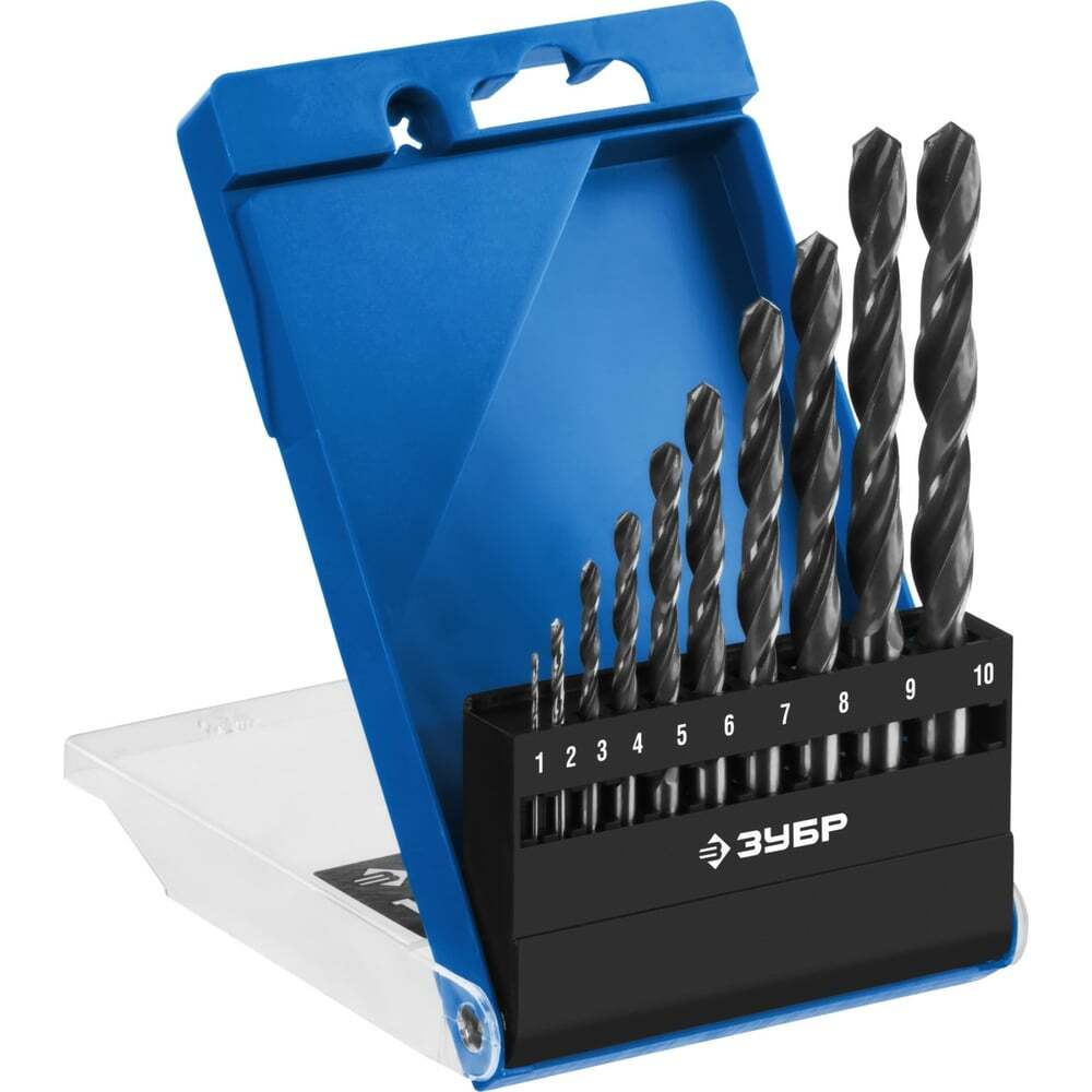 Набор сверл ЗУБР 29621-H10, предназначен для обработки легированных и углеродистых сталей с пределом прочности до 900Н/мм2, цветных металлов, серого чугуна и пластмассы. Качественное сверло с высоким ресурсом. Изготовлено методом винтового проката по ГОСТ 10902-77 и соответствует классу точности "В". Угол заточки 118 градусов позволяет обрабатывать легированные и углеродистые стали.